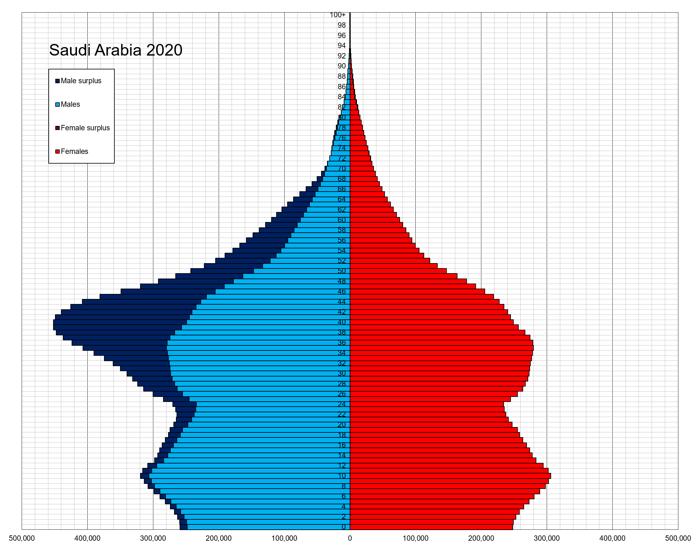 Państwo jest utrzymywane w funkcjonowaniu przez pracowników i ekspertów zagranicznych. Stanowią oni 77% zatrudnionych. To też 44% całej populacji zamieszkującej państwo Saudów.
